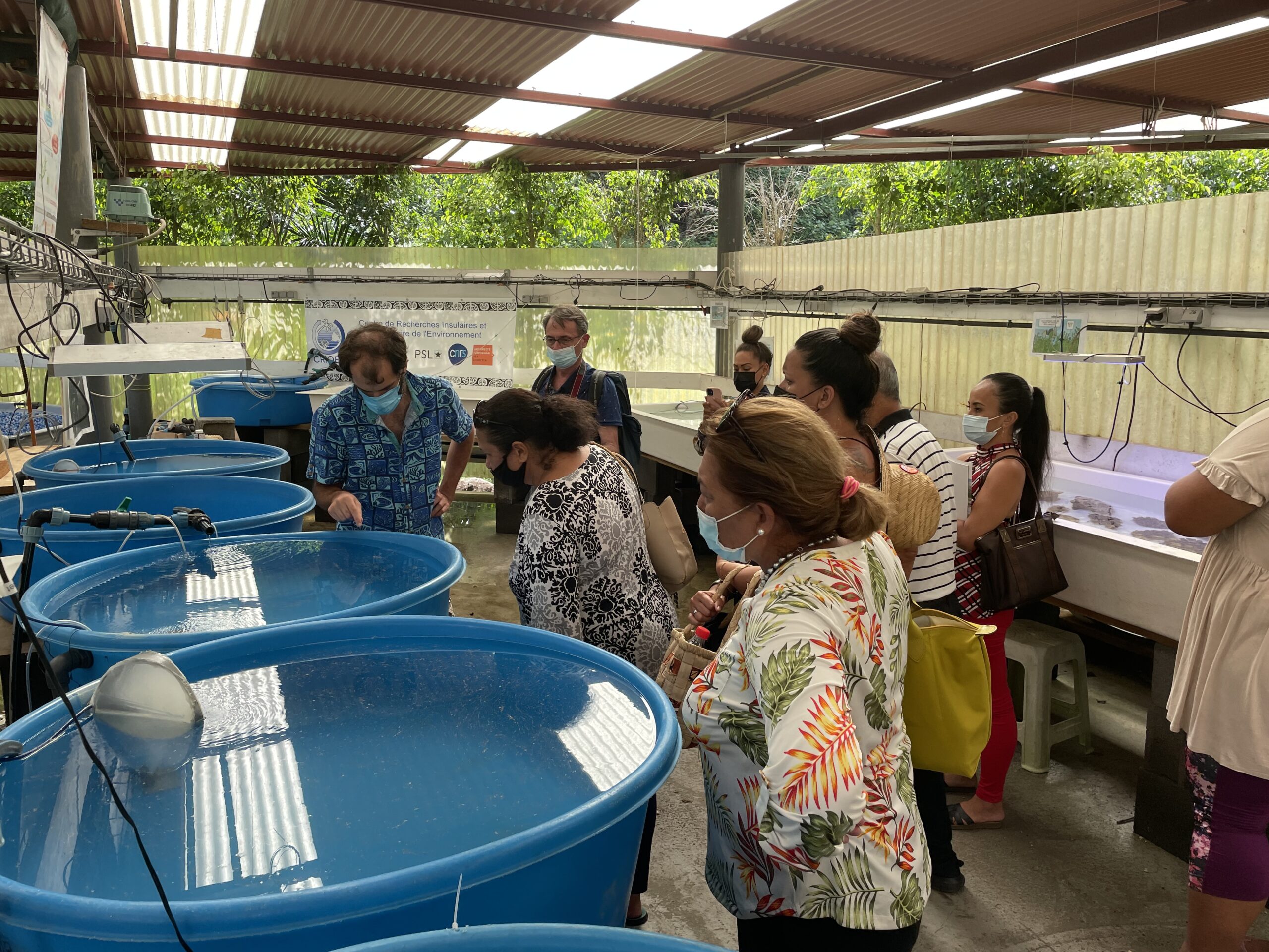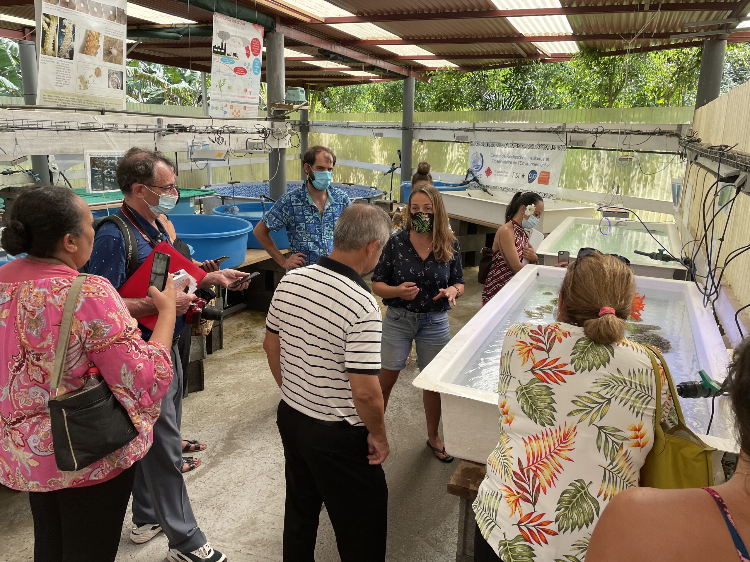 Ils ont ensuite visité différentes salles d’expérimentation : les recherches pour une exploitation du venin de cône de mer respectueuse de la ressource et les études sur le corail en cette période toute particulière des pontes des coraux.