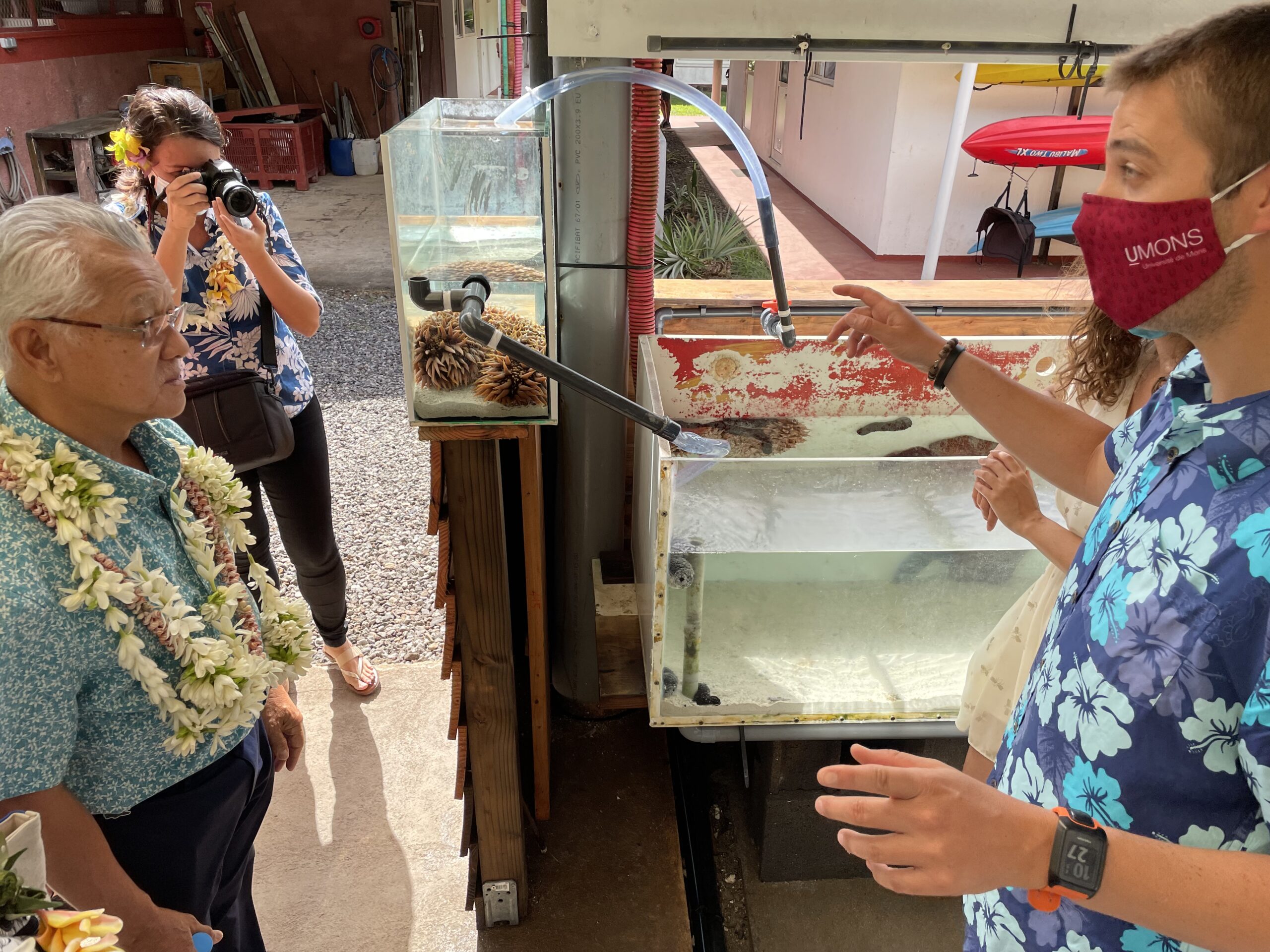 Le 30 juillet 2021, le CRIOBE a reçu une délégation de l’Assemblée de Polynésie française, animée par son président Gaston Tong Sang, également maire de Bora-Bora. Durant leur visite, ils ont pu échangé avec les chercheurs puis visité le Fare Natura, ouvert au public le lendemain, et rencontré son équipe.
