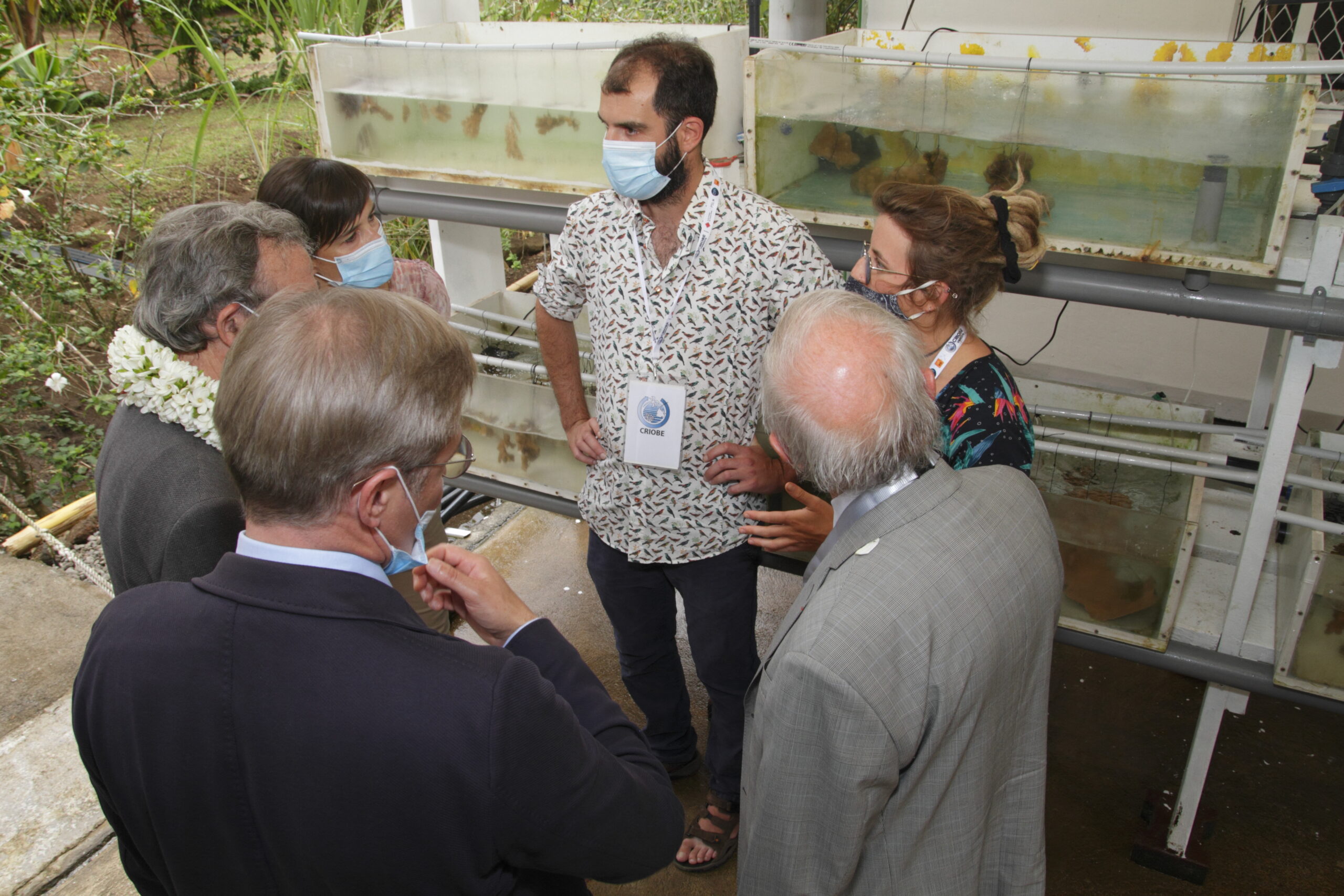 Durant la visite, la chercheuse Laetitia Hédouin a présenté des études sur le corail, les impacts du changement climatique, le transfert de la connaissance scientifique vers des solutions pour la résilience et la préservation des récifs coralliens et les services qu’ils rendent en termes d’alimentation, tourisme et protection.
