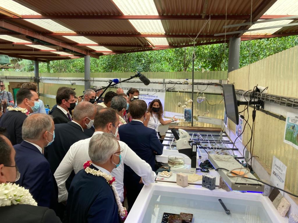 Le 27 juillet 2021, le CRIOBE a reçu Emmanuel Macron, Président de la République française, et sa délégation, parmi laquelle se trouvaient le ministre des Outremers Sébastien Lecornu, le Président de la Polynésie française Édouard Fritch et son vice-président, Tearii Alpha, aussi ministre en charge de la recherche, le Président de l’Assemblée territoriale Gaston Tong Sang, le sénateur Teva Rohfritsch, la députée Maina Sage et le maire de Moorea Evans Haumani. Étaient également présents Antoine Petit, président-directeur général du CNRS, et Jean-Michel Verdier, président de l’EPHE-PSL.